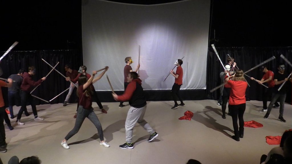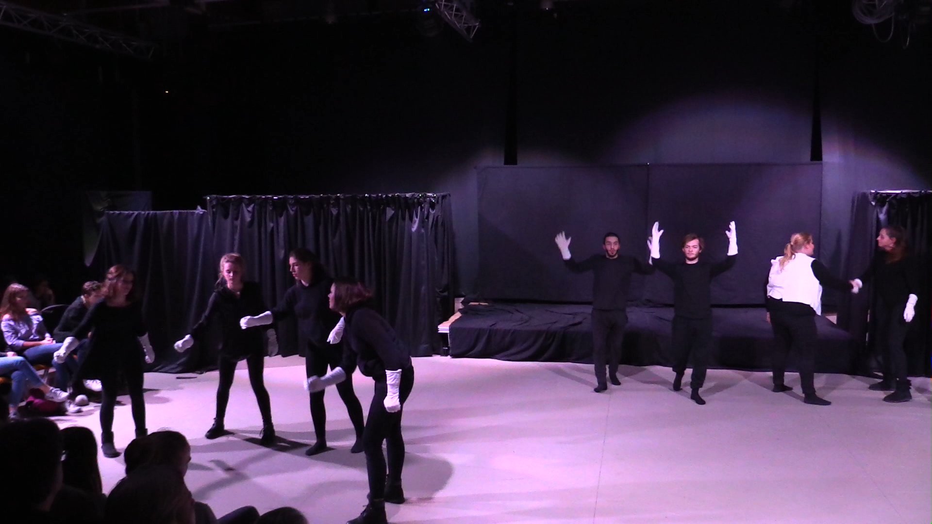 Und so entwickelten beide Kurse zum selben Thema des Identitätsverlustes, seiner beginnenden Suche und weiterhin irritierenden „Findung“ im Einsatz sich voneinander unterscheidender Spielformen zwei sehr intensive Stücke.