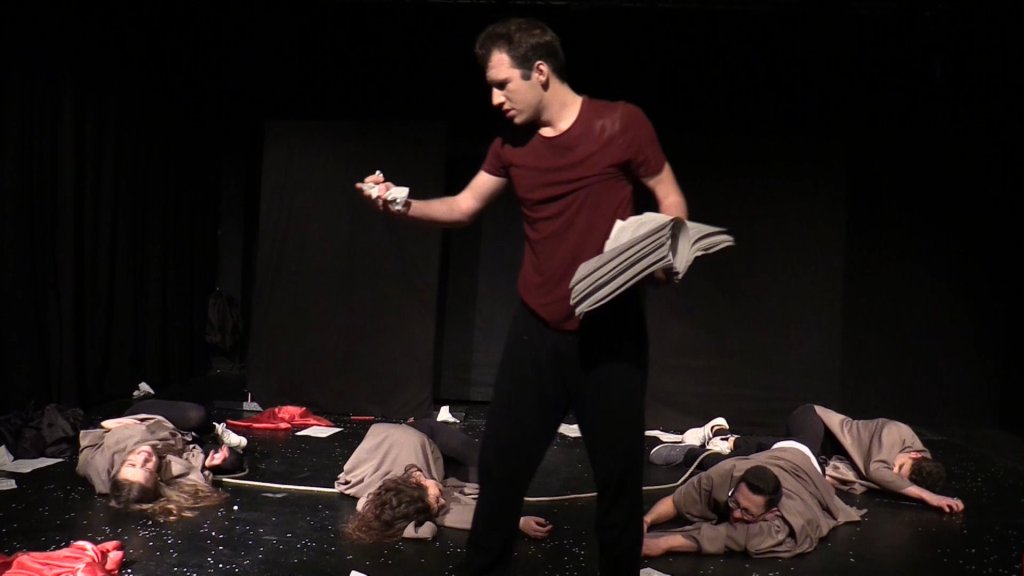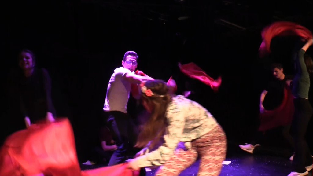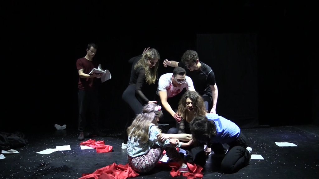 Die sieben jungen Erwachsenen haben zur Darstellung dieser Projektidee mit humorvoller Selbstironie kraftvolle Bilder gefunden und diese über vielfältige theatrale Gestaltungswege in zehn Wochen zu ihrer ganz eigenen Inszenierung geformt.