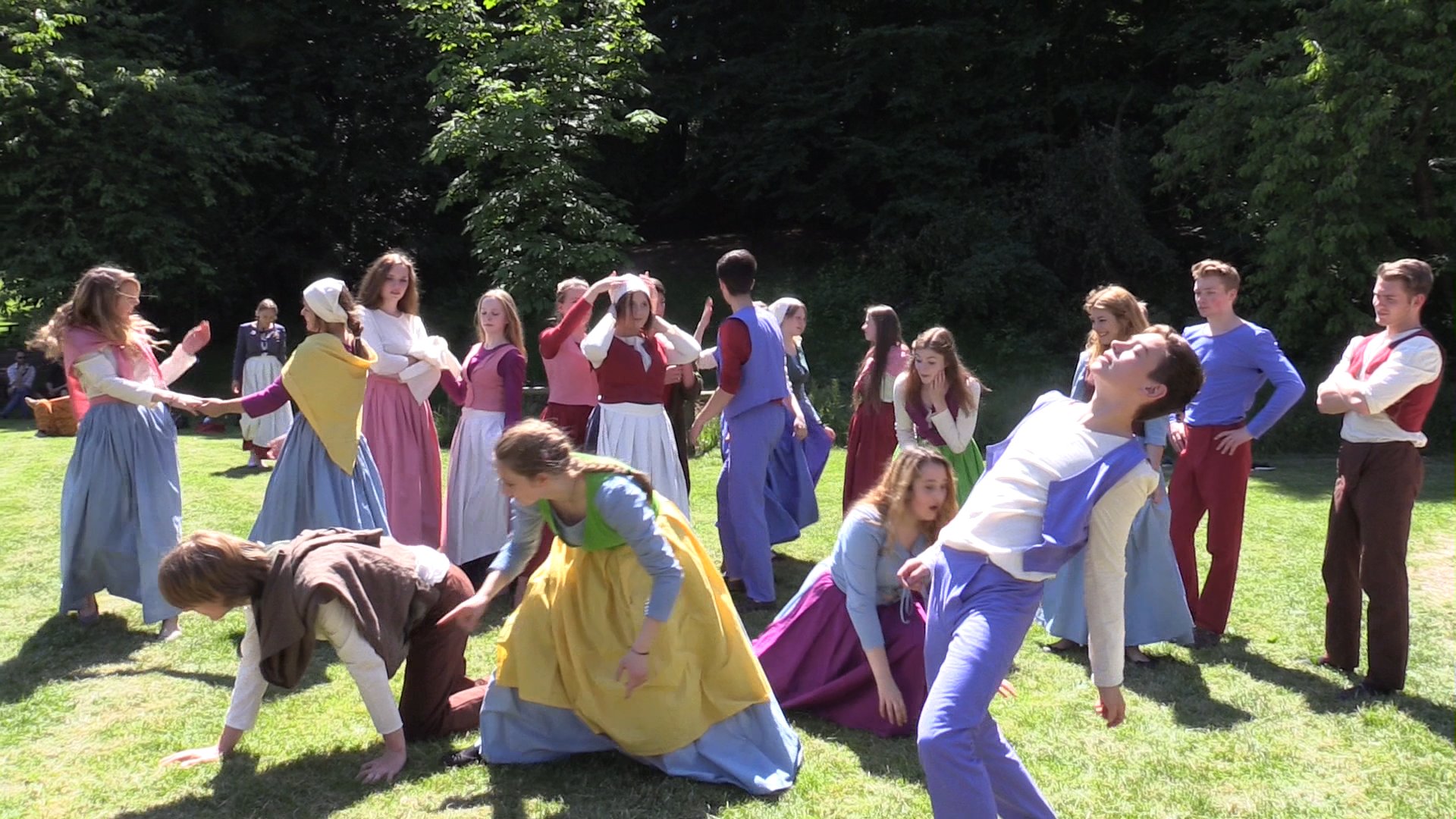 Das zweite Semester bildete einen bewussten Kontrast in der Eroberung weiterer Spielformen und ästhetischer Umsetzungen (siehe „Projekte“, „Jugendliche“, „Bauern im Brennpunkt (2015)“). So bildeten Gemälde Piether Brueghels (etwa 1525-69) mit seinen deftigen Darstellungen des Bauern-Milieus Ausgangspunkt für szenische Entwicklungen im Ensemble. Gleichzeitig dienten sie als Impulsgeber für die Kreation eines kurseigenen Kostümkonzepts, das in Maßschneiderei umgesetzt wurde.