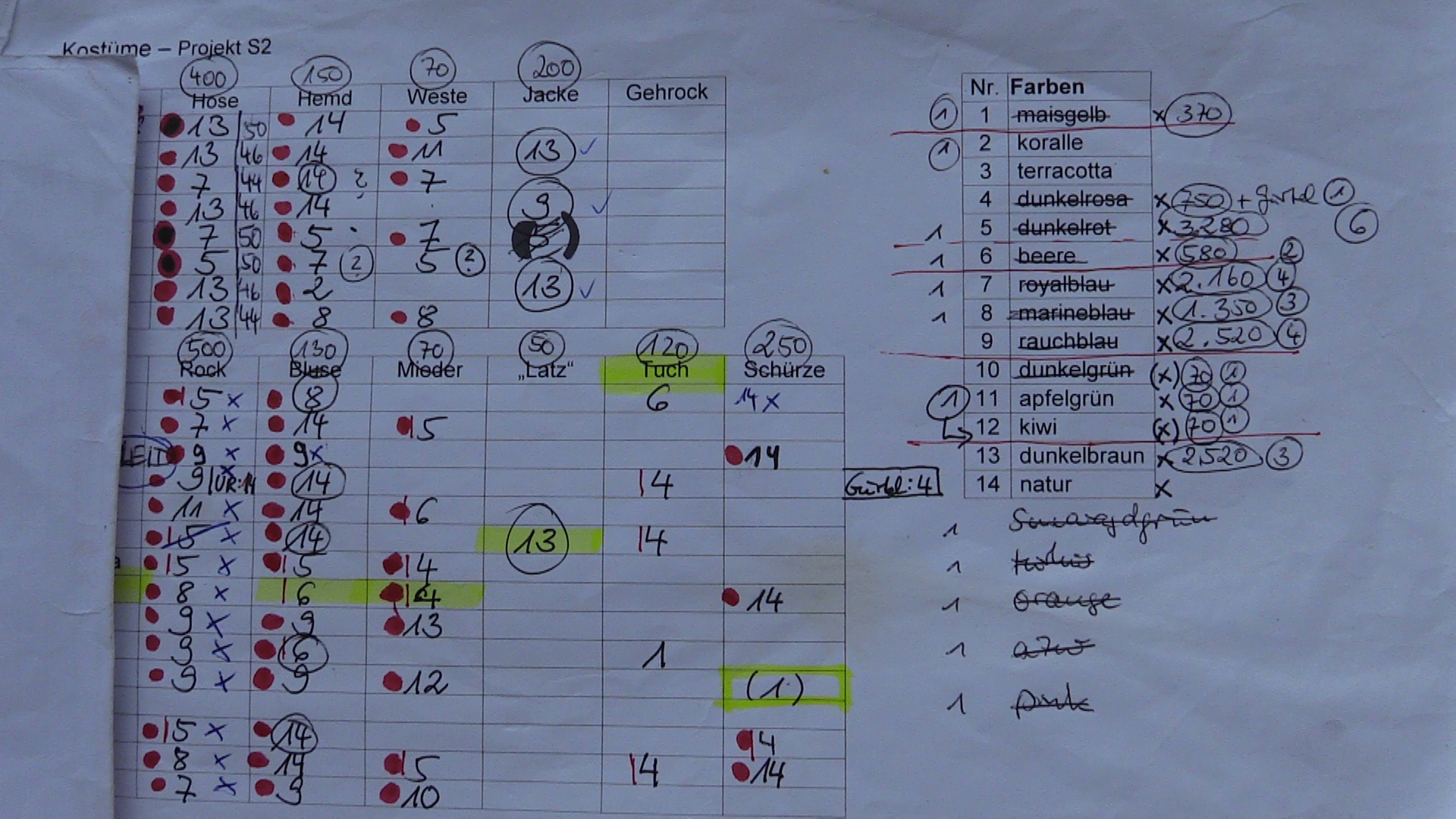 Die Wahl des Materials fiel auf vielseitig verwendbaren ungebleichten Nesselstoff – diesmal, weil er robust und pflegeleicht die Verbindung zur Leinenoptik der Bauernkleidung herstellen lässt. Die Farben wählten wir nach dem bunten Eindruck verschiedener Brueghel-Gemälde aus und färbten den Stoff mit Textilfarben ein, bevor er zum Maßschneidern in mein Atelier gelangte.