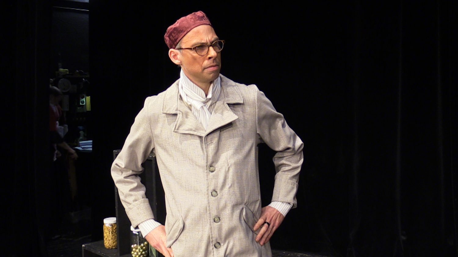 Bis auf Charles, der als einziger zum bodenständigen Umfeld seines Wohnortes passt und daher wärmere Erd-Töne in seine Gewandung aufnimmt, orientieren sich alle Teile der Herrenkostüme ebenfalls am Farbkonzept SCHWARZ-WEISS-ROT. Die Wahl der Stoffqualitäten und ihr konkreter Schnitt richteten sich am Charakter und Ausdruck der jeweiligen Rolle aus.